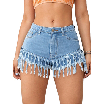 2025年夏ファッションローウエスト女性用ストレッチスキニーフリンジデニムショーツセクシーミニブルージャンショーツ女性用